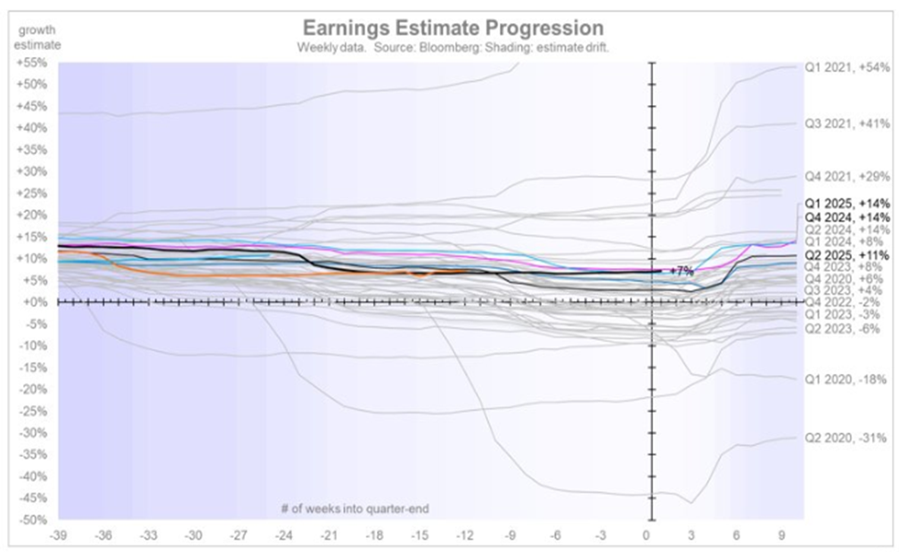 Mit der nur noch wenige Wochen entfernten US-Berichtssaison und weiterhin steigenden Gewinnschätzungen erwarten wir, dass die aktuelle Wachstumsprognose von 7 % erneut zu vorsichtig sein könnte – wie schon in den vergangenen Quartalen. Das Gewinnwachstum könnte letztlich im niedrigen zweistelligen Bereich liegen.